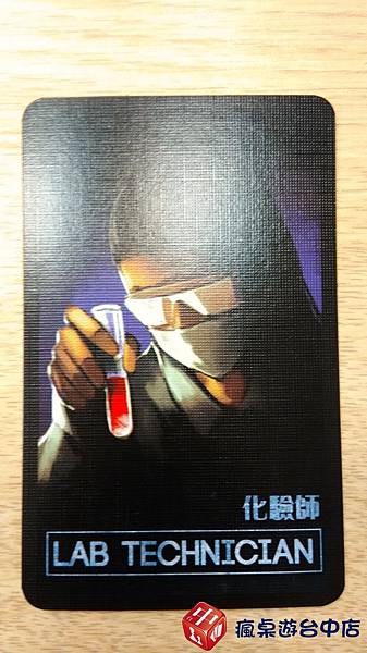 2.化驗師:好人陣營。可以選擇一張藍卡或紅卡查驗是否為兇手所使用。