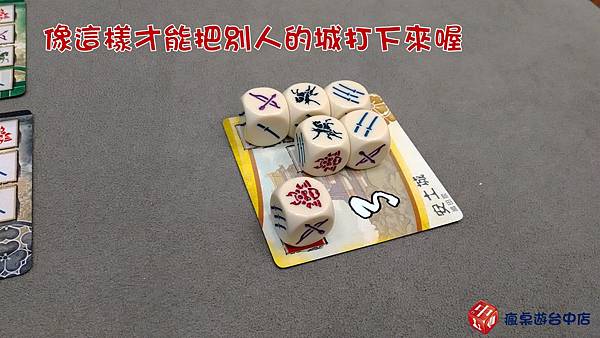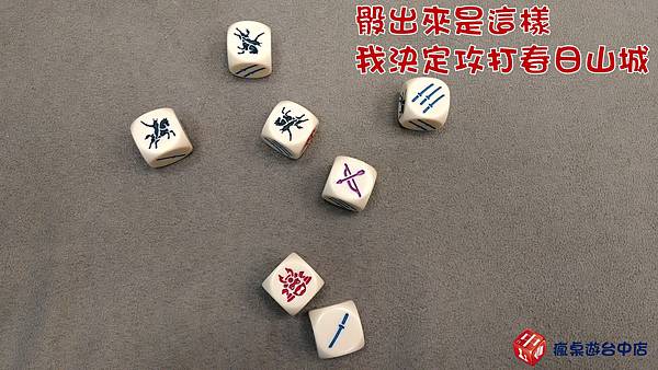 輪到你時首先擲7顆骰子,擲完以後立即決定本回合要攻打哪座城池。