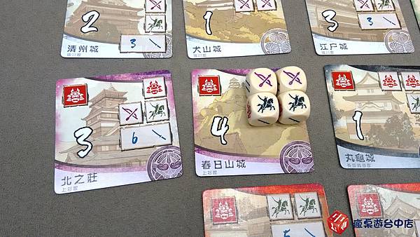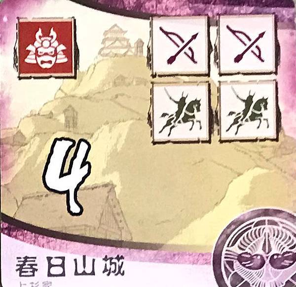 像「春日山城」必須擲到 2騎兵 2 弓兵才能成功佔領。