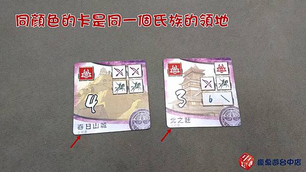 另外可以注意到,卡片會有不同的顏色,同一個顏色代表是同一個氏族的領地。